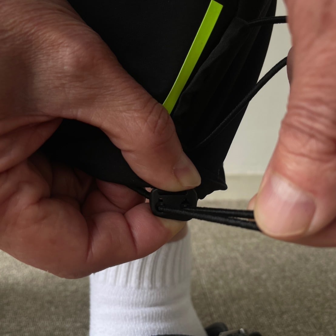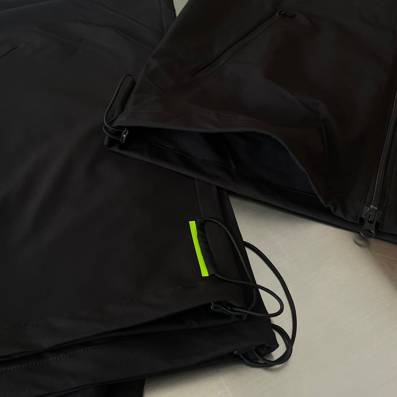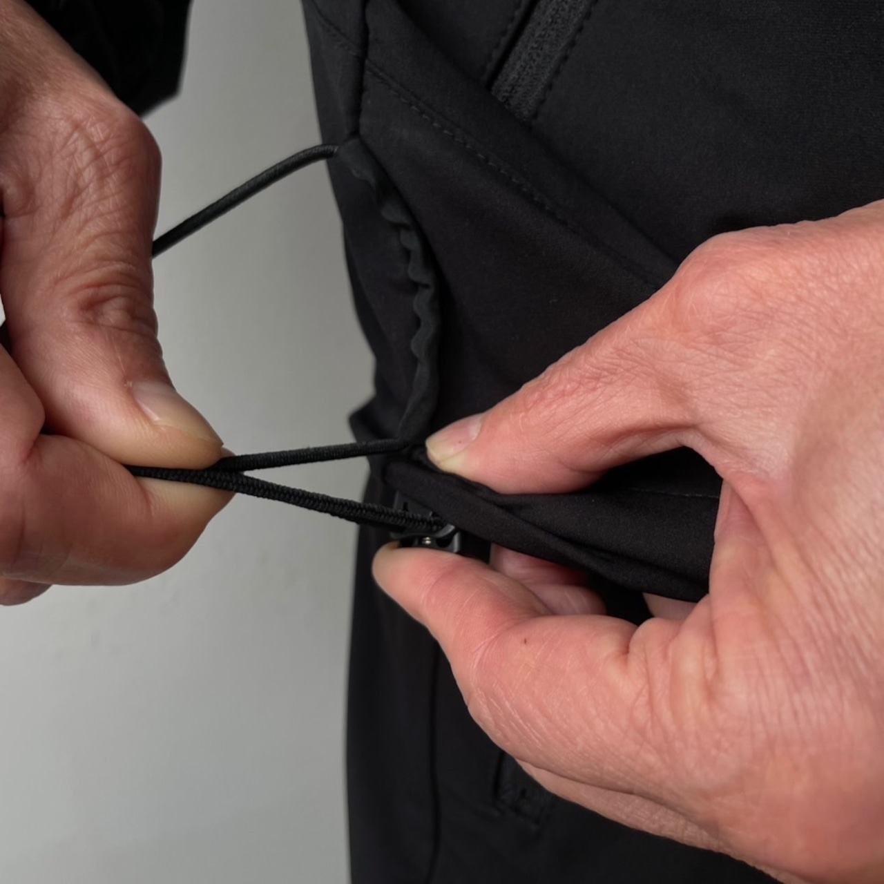 ブルゾンの着丈、ウエスト、パンツ袖口の3点にはコードと留め具付きで、長さの調整が可能。